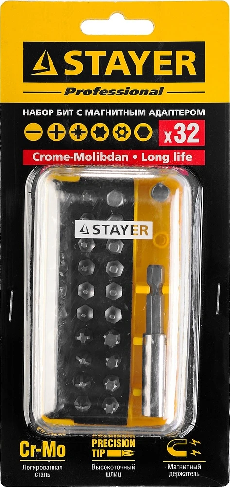 Набор PROFI биты Cr-Mo, в компактном боксе, 32 предмета STAYER 26135-H32